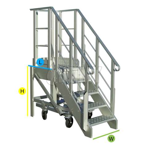 Bewegliche Treppe und Podest mit Stufen aus Polyester