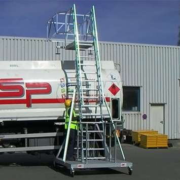Wether for controlling cargo or taking samples via manholes, access to the top of tanks needs to be done under safe conditions. It is for this very reason that we have developped our own mobile tanker ladder.